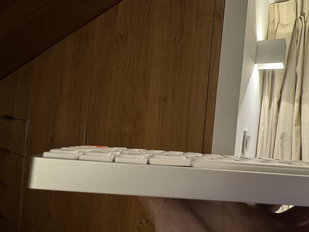 2) Build quality. My unit has a command key that’s visibly off. It’s not catastrophic, but when you appreciate clean lines and symmetry, you notice it every time you sit down. The knobs, which look fantastic, introduce a subtle scratchy friction as they turn — as if they’re just grazing the inner edge of the housing. Again, not a showstopper by itself, but at $439, these details erode the premium feel.