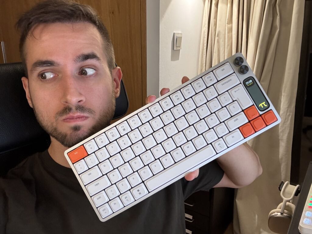 1) Battery life. Coming from Apple keyboards that go two to three months between charges, three days felt like stepping back a decade. On Bluetooth with the screen on, I hit about that mark repeatedly. Yes, I could power it off nightly and probably squeeze a little more out of it, but that adds friction to the workday. There’s been talk of a power‑saving mode — the keyboard sleeping after inactivity — and I hope it arrives, but at this price I expected that to be there on day one.