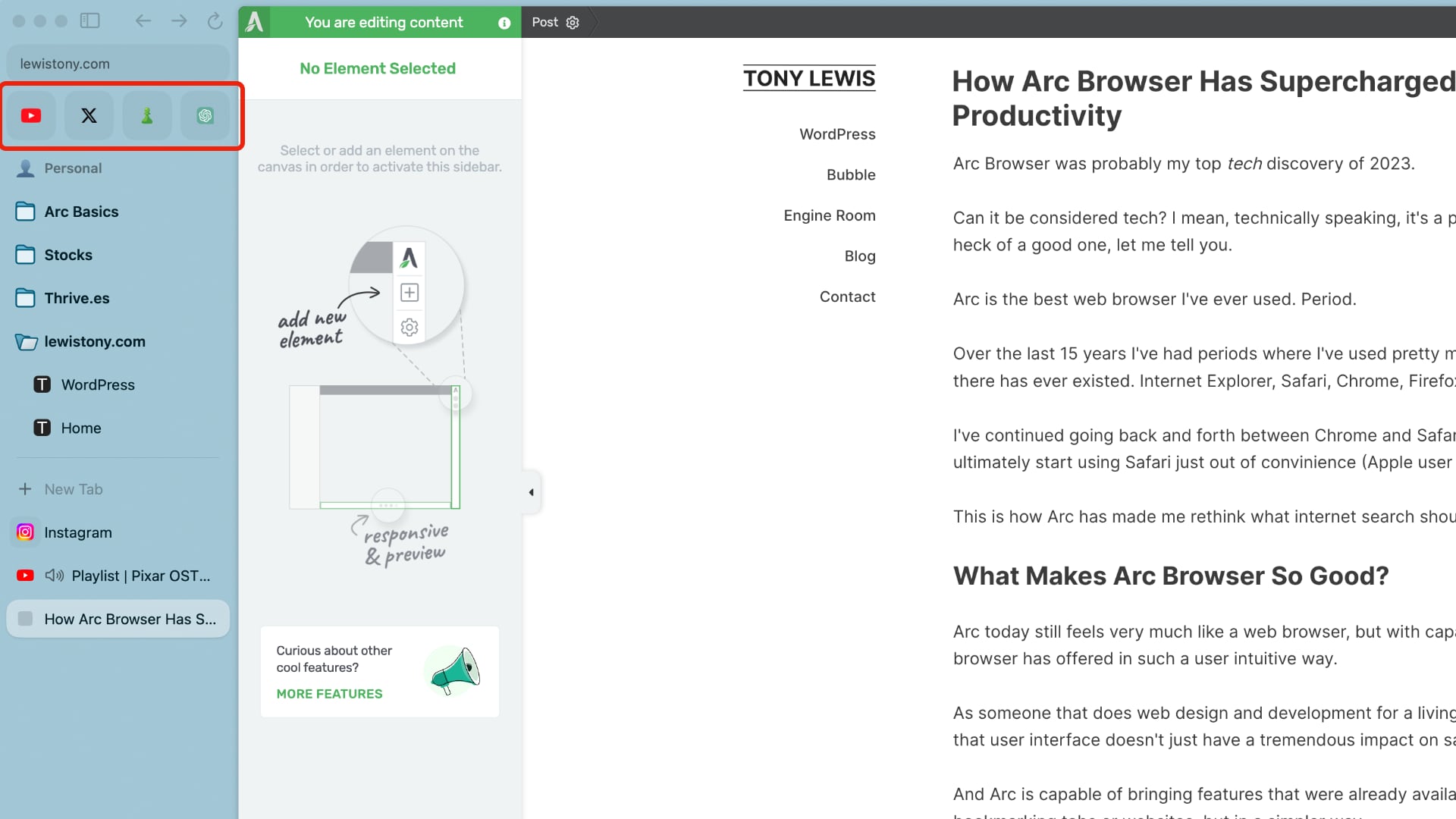 But as of today, Arc offers the best experience I've ever had from a productivity standpoint.